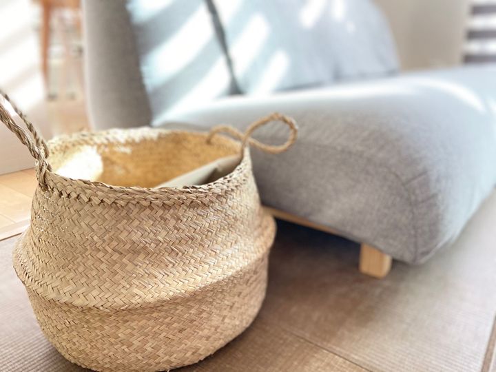 リビング、子ども部屋、寝室で使えるのがカゴの隠し収納。ちょっとしたものをインテリアの邪魔にならずに収納しておくのにぴったりです。気になったらすぐに持ち運べるのも良い所!掃除の時も邪魔になったりしないので、よく使うから出しっぱなしにしたいけど、見た目が気になるというモノがある場合に使える収納です。