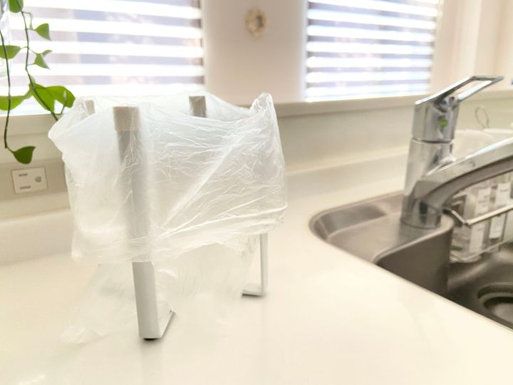 towerと言えば代表的なのがポリ袋エコホルダー。色んな用途に使えますが、我が家では三角コーナーの替わりに使っていて、スーパーのポリ袋を利用して調理中に出る食品ごみを食事ごとにまとめて捨てています。使い終わったら引き出しに畳んで収納。ママ友が遊びに来るような時にはテーブルの上に簡易ゴミ箱としてセットしています。