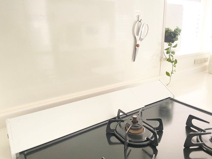 油ハネや、調理中の汚れがコンロの排気口につくのを防ぐ排気口カバー。スタンドを立てておくだけのシンプルなカバーで、汚れも簡単に拭き取れます。約45~82cmの間で幅を調節できるのでコンロ幅に合わせて伸縮させるのでとっても便利です。