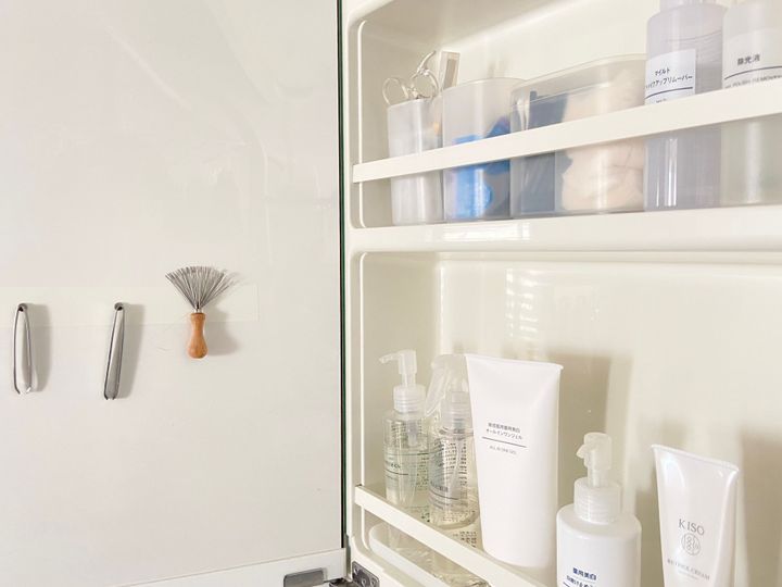 アラフォーにもなると肌は乾燥気味なので朝から洗顔料を使う必要はないと考えてぬるま湯洗顔に変更、化粧水・乳液・美容液など複数のスキンケアを1つで済ませることができるオールインワンジェルを活用すれば手に取るスキンケア用品を減らし、使う順に左から並べて三面鏡に収納しておくことで、スキンケアの時間を時短しました。