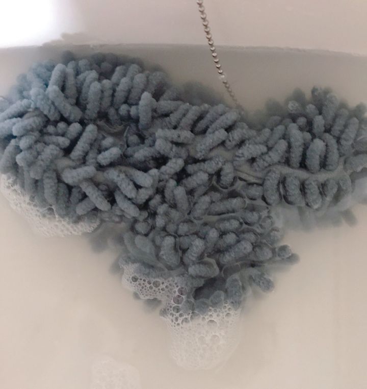 埃をコロコロで取り除き、水を張った洗面台に中性洗剤を入れて洗います。