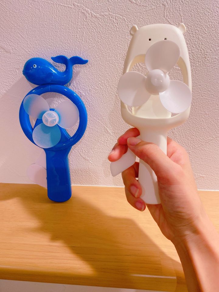 セリアはダイソーよりデザインが可愛らしい、パステル系やキャラ系のハンディファンが多かったです。