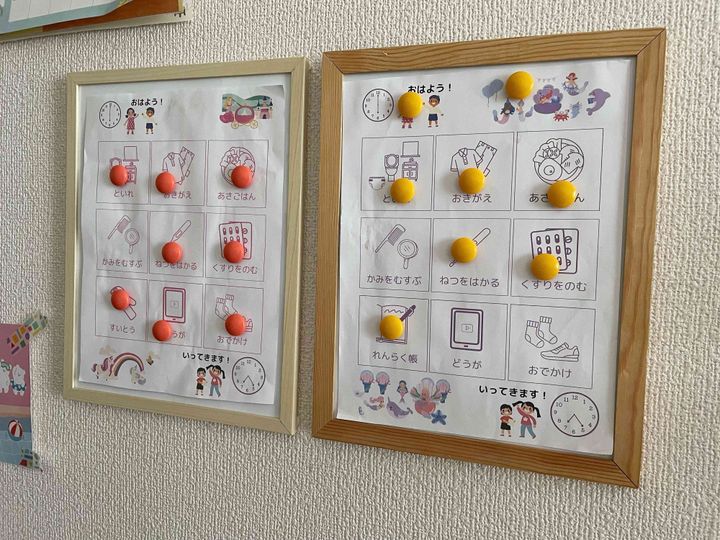 やるべきことをイラストで示し、子どもが楽しく身支度が出来る「お支度ボード」。