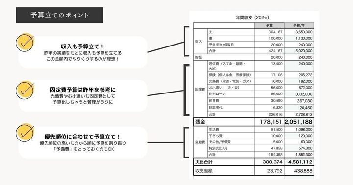 実は、がんばらなくとも黒字が続く家計づくりに欠かせないのが「予算立て」。