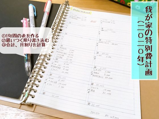 我が家では1年間の【特別費計画表】を作って、項目と金額を書き出しています。