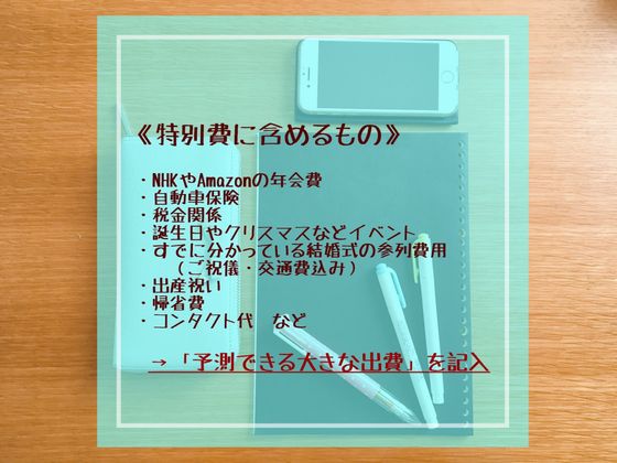 うちでは「予測ができない出費」は「特別費」に含みません。