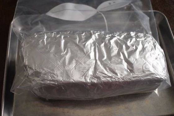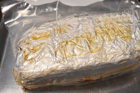 焼きあがった肉はすぐにアルミホイルで密閉し、密閉袋(またはポリ袋でもよい)に入れます。