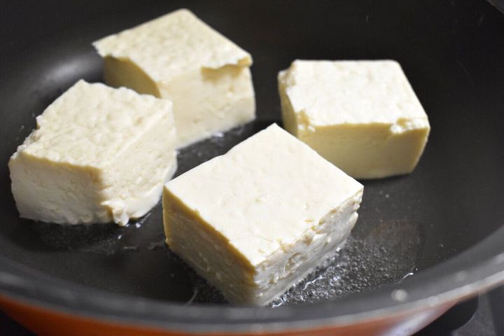 今回は「木綿豆腐」を使用しています。絹ごし豆腐でも作れますが焼くときに型崩れしやすいので、しっかり水きりをして焼くことをおすすめします。