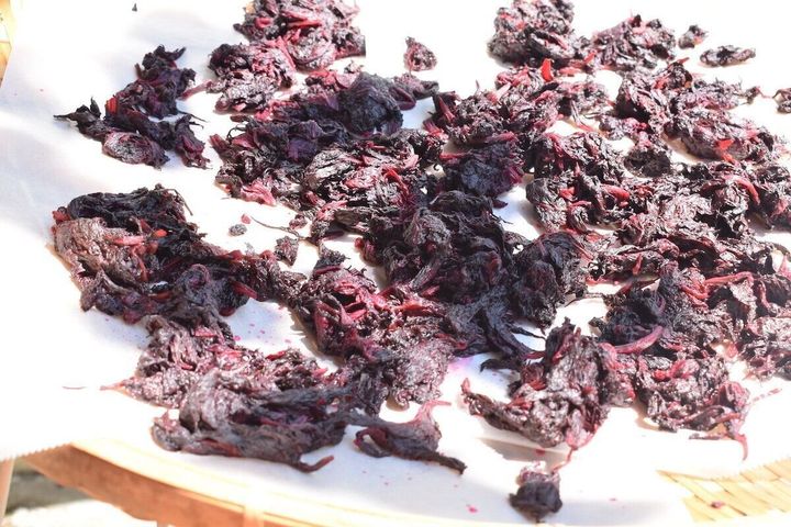 赤しそはしっとりしたまま食べてもおいしいですし、カラカラに干してミルにかけると、自家製ゆかりふりかけに。
