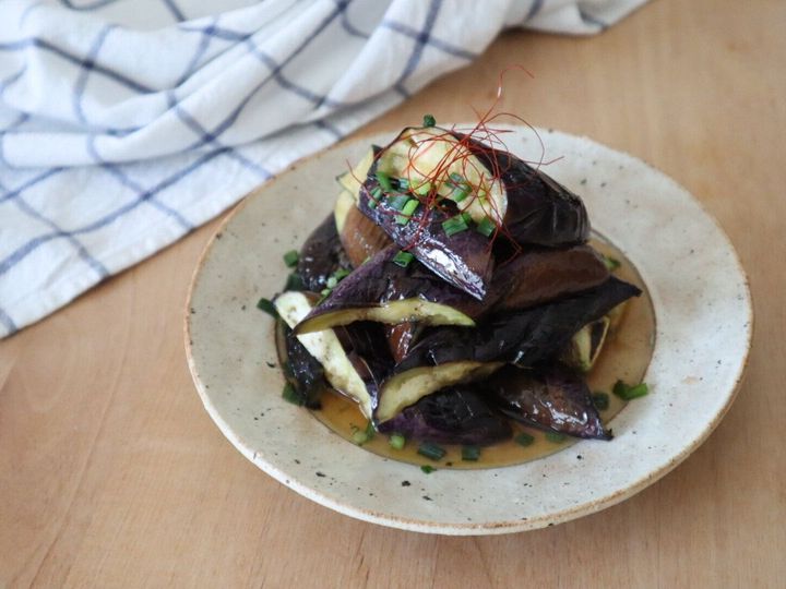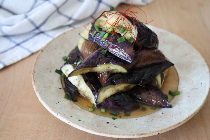 茄子の煮浸しは、できたても美味しい、冷やしても美味しいので、常備菜にたくさん作ってもいいですね。また、これからの季節、ざるそばやお素麺などの冷たい麺にもぴったりです。焼き方までは同じで、バルサミコ酢(酢)とオリーブオイルで、マリネにするのも美味しいです。