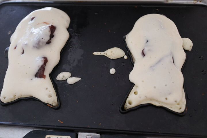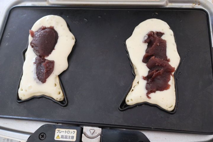 5. あんこなどを入れて、隠すように生地をかぶせて2~3分焼く