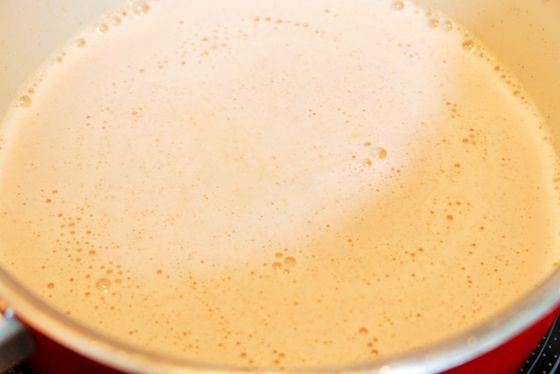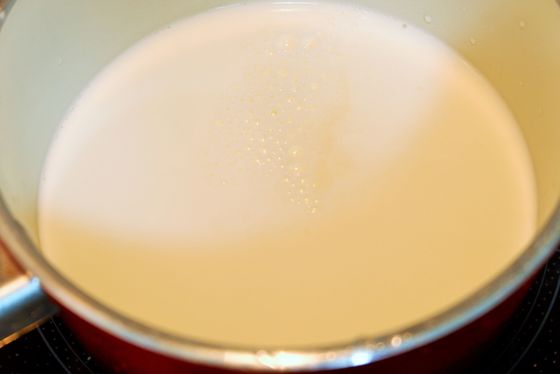 2.鍋に牛乳を入れ、温める。