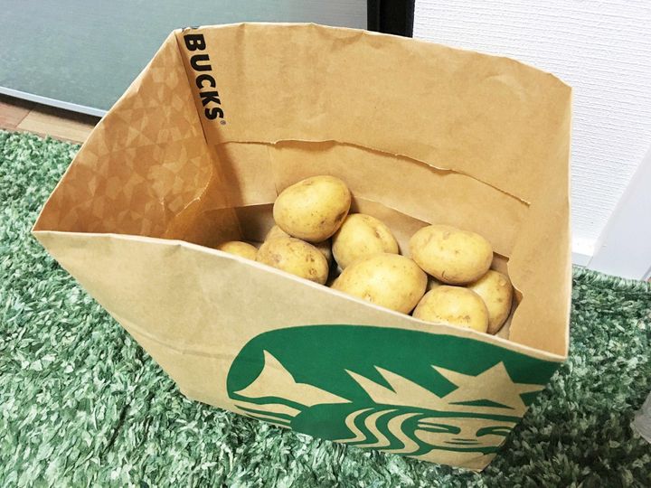 下に土や玉葱・にんにくの皮が溜まってきたら、そのまま捨てて違う紙袋に変えられるので、とても便利です♪