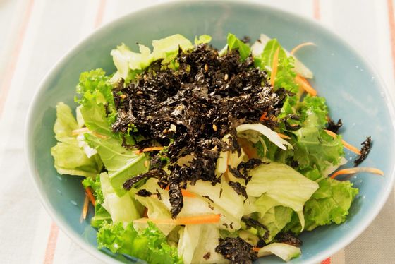 生野菜にジャバン海苔とチョレギサラダドレッシングをかければ、野菜を無限に食べられます。笑