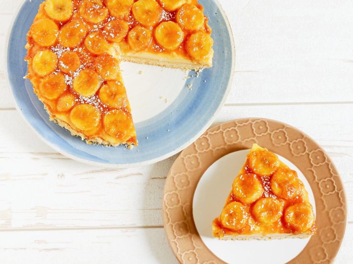 【ホケミ活用】バナナ消費に!レンチンカスタード入りのキャラメルバナナタルト