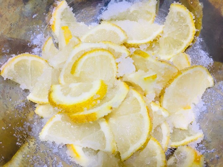 1.レモンはよく洗い、5mm程度のいちょう切りにする。種は取っておくと飲むとき口に残りません。