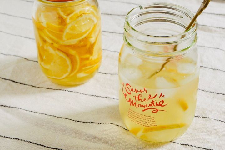 作ったレモネードは水、炭酸水などで4倍希釈がちょうどよい濃さ。