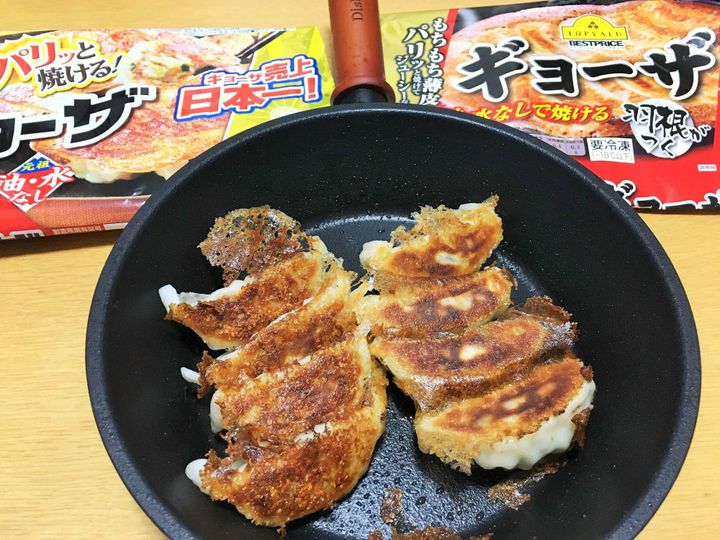 最近は「水なし・油なし」で焼ける冷凍餃子が定番になってきていますね。