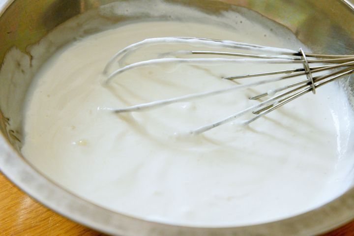 2.ボウルにヨーグルトを入れ、なめらかになるまで混ぜる。
