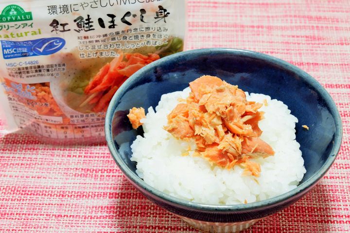 通常のトップバリュブランドの鮭フレークより多少値段は上がりますが、10年後魚が減っているのは困る!