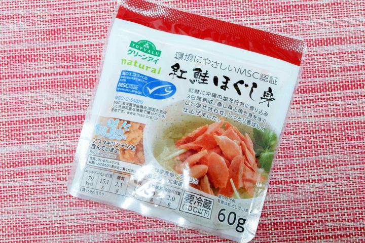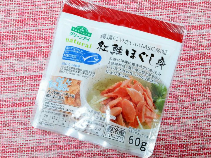 「環境に優しいMSC認証 紅鮭ほぐし身」です。