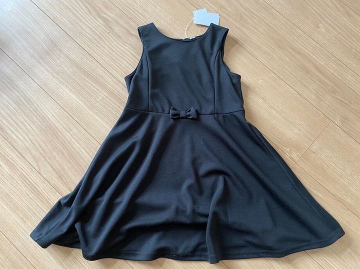 シンプルだけど、切り替え部分のリボンが可愛らしい黒のワンピース。