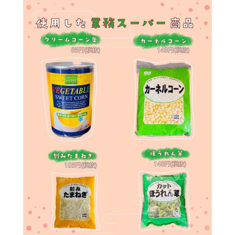 今回は業務スーパー商品を活用した簡単レシピ「コーンクリームグラタン」を紹介します。