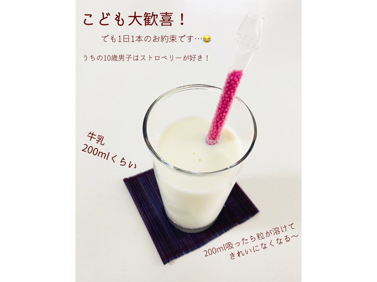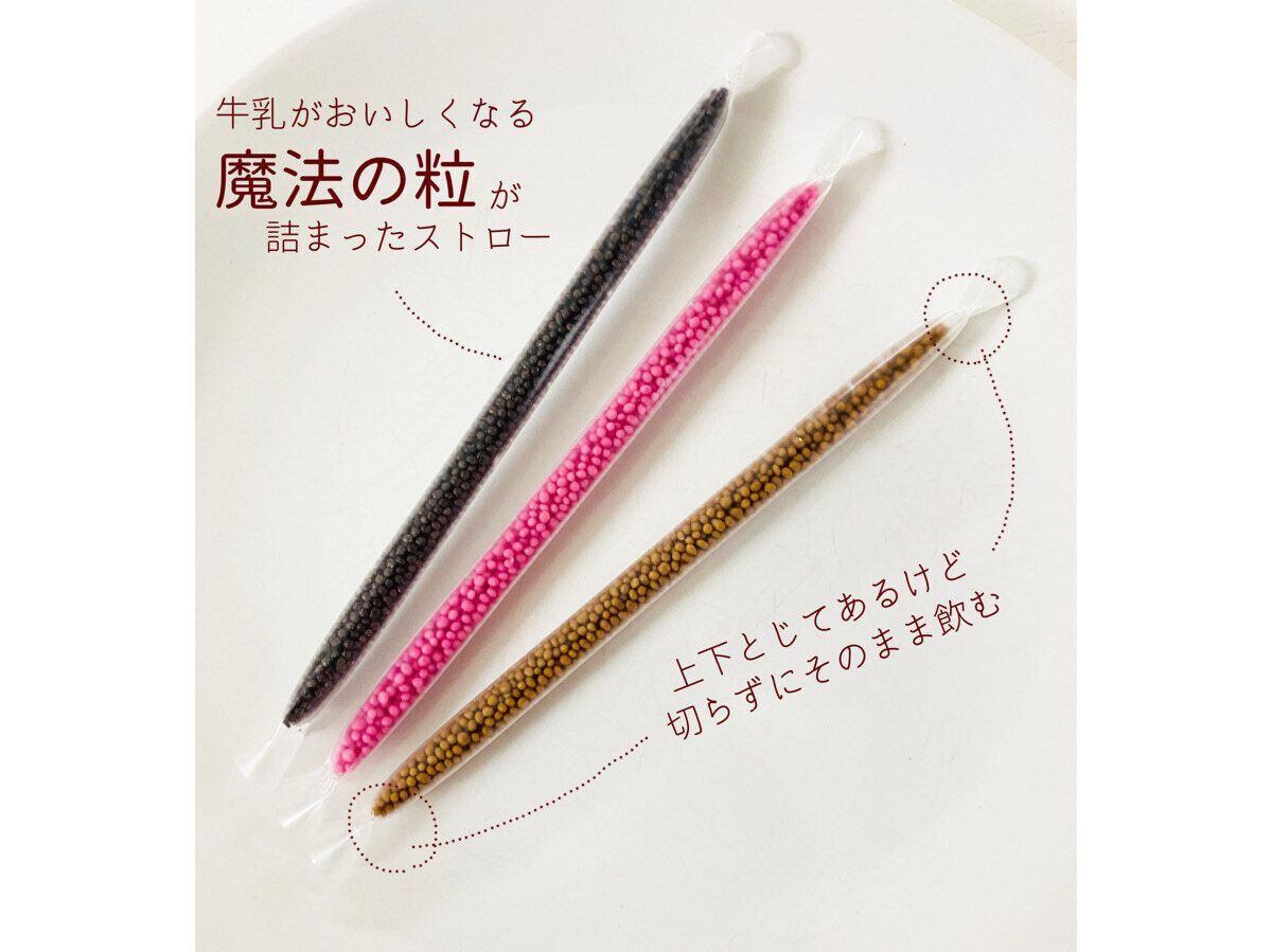 牛乳で溶ける粒が詰まっているストローです。
