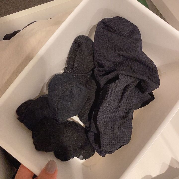 また靴下は全て同じものにして引き出しにしまう時にポイポイ簡単にしまえるようにしています。これなら靴下をたたまなくてよいのに加え、片方がなくなったり穴が開いても他の靴下でカバーできます。