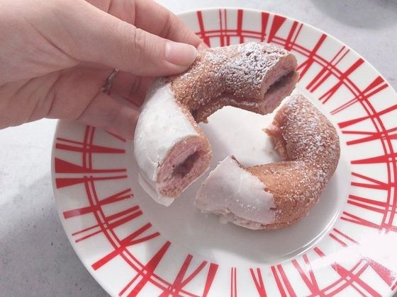 最初に食べた桜もちっとドーナツ 桜フレーバーとは少し違い、生地の中はモッチモチなのに表面はサクサク!1度に2種類の食感が楽しめます♪