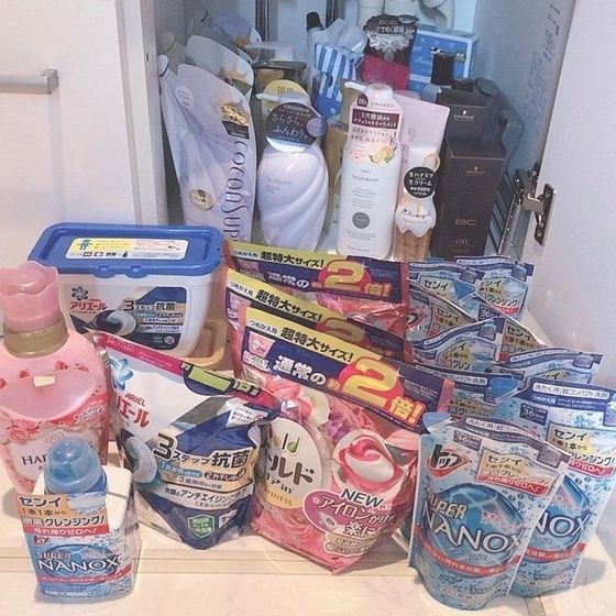 我が家は洗濯洗剤だけで棚上がいっぱい。。