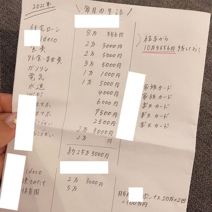 毎月の生活費を1枚の紙にまとめて見える化しました。