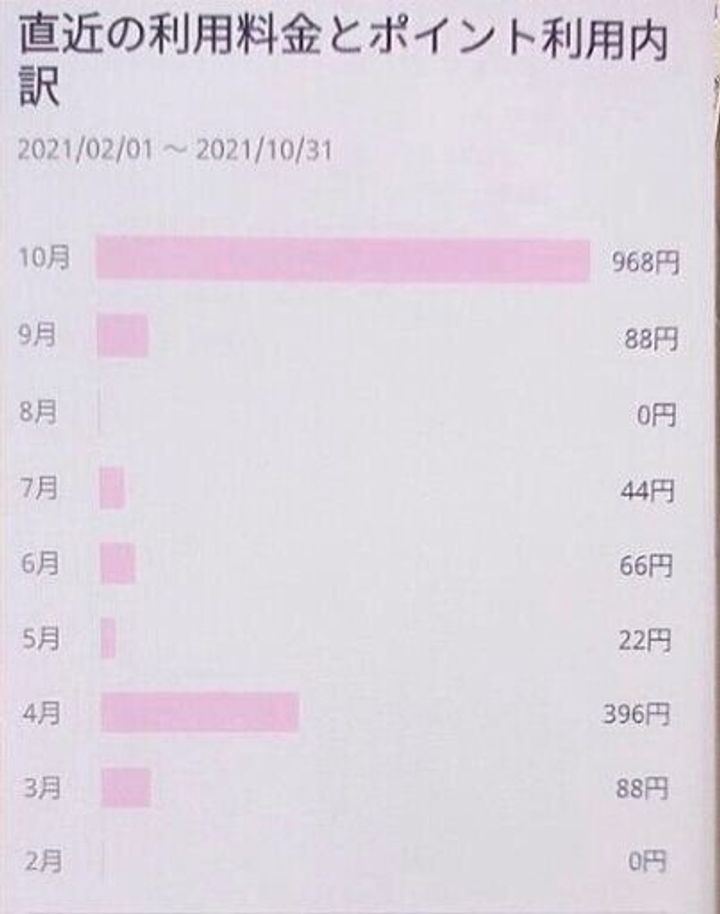 昨年の10月に関しては1000円弱もお金がかかっており、おかしいなと思った私は楽天モバイルに問い合わせてみました。