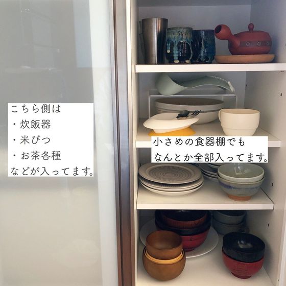家は3人家族ですが、小さな食器棚を使っているため、とにかく食器を増やさないことを心がけています。