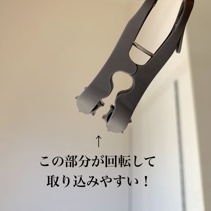 商品名にもある通り、この洗濯ハンガーは洗濯物を引っ張るだけで取り込めます。いちいちピンチをはずすことなく、大量の洗濯物を一気に取り込めるのです。まさに時短家事!