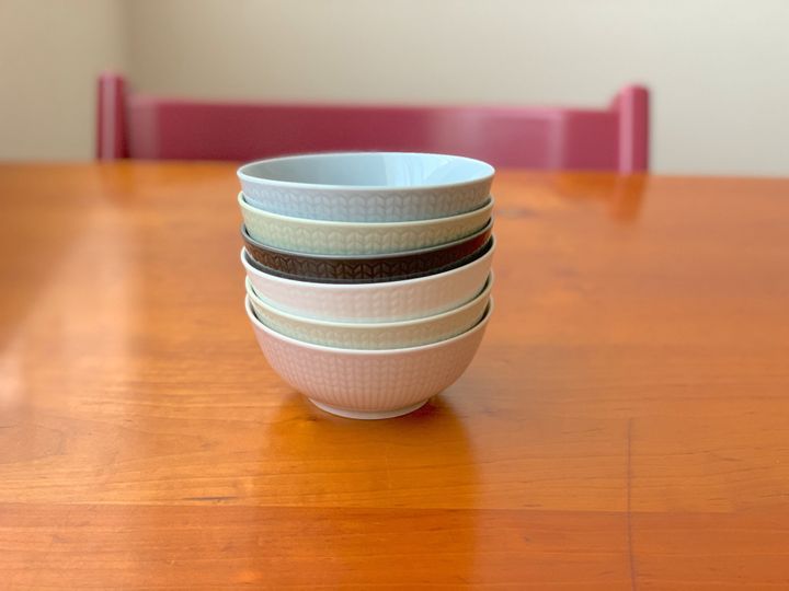 我が家では、夕飯の副菜を盛りつける小鉢としてよく使っています。他にも、漬物、デザート、子どものおやつ、さらには来客時にご飯茶碗として……盛りつけられないものはありません。こちらはティーマと違い、薄くて軽い食器です。子どもでも持ち上げやすく使いやすいです。もちろん食洗機、電子レンジに対応しており普段使いにぴったりです。