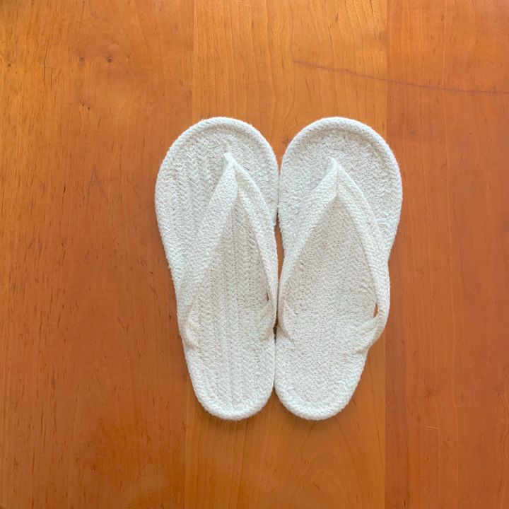 鼻緒タイプのルームサンダルです。スリッパのように足を覆わないので、涼しく気持ちがよいです。特にお風呂上りや夏場にはサラッと履けて重宝しています。丸ごと洗濯もできますので、いつも清潔に掃くことができます。