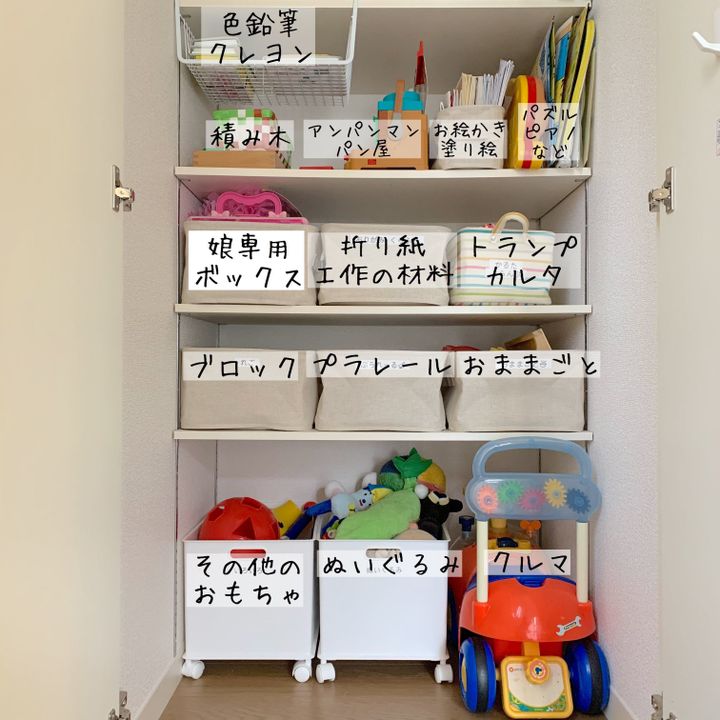 おもちゃは子どもたちの物で、使うのも子どもたちだけ。だから収納の仕方も「子どもの目線」を一番大切にしてあげるべきだと感じました。子どもたちにとっての取り出しやすさや片付けやすさは、当たり前ですが大人とは違います。成長に合わせて収納の仕方も変わりますので、子どもたちの様子をよく見ながら、その時その時に合った収納方法を考えていきたいと思います。
