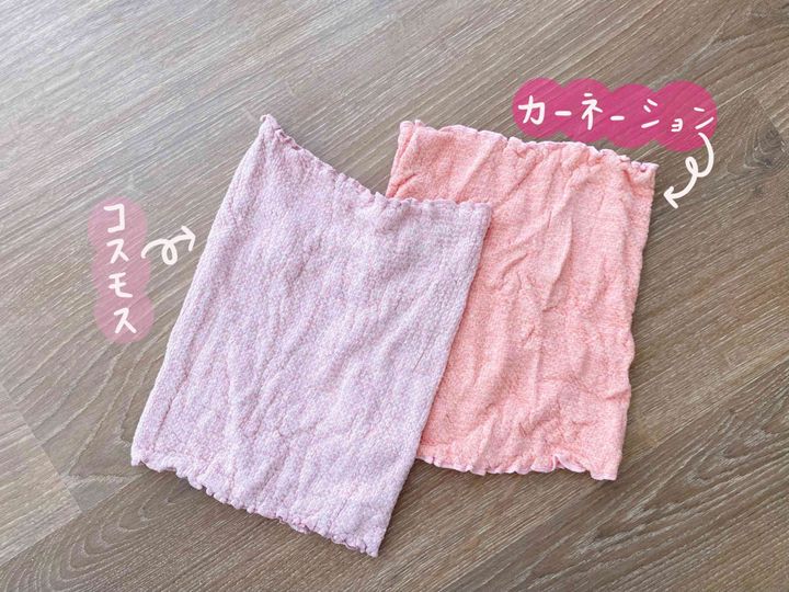 幅広で胸下からおへそまでしっかり包んでくれるので、温める範囲が広いのも気に入っています。さらにカラーバリエーションが豊富!私は「カーネーション」「コスモス」の2枚をローテーションで使っています。洗う時は洗濯ネットに入れています。