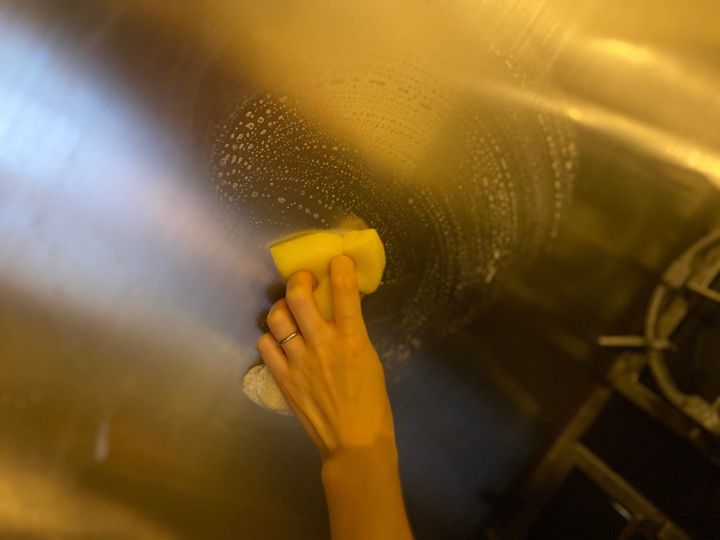 放置したままだと汚れがこびりついて掃除が大変に!使い古しのスポンジとウタマロクリーナーで入念に磨きました。ウタマロクリーナーは家中どこでも使えるので場所毎に洗剤を持たなくて良い所が気に入っています。