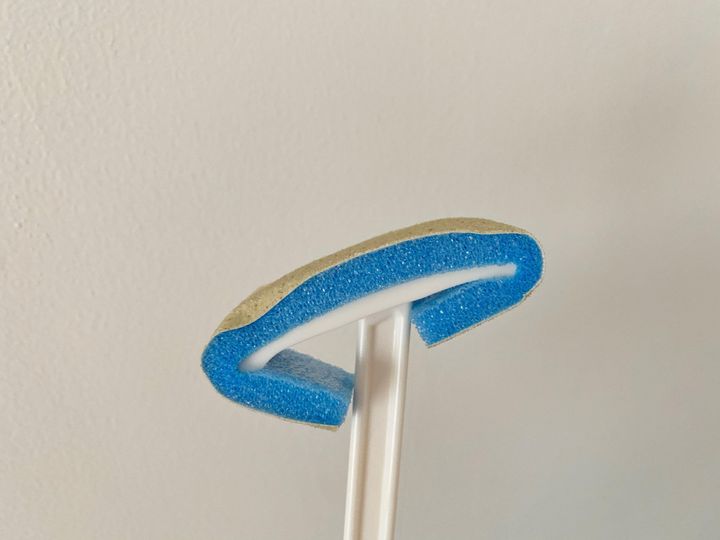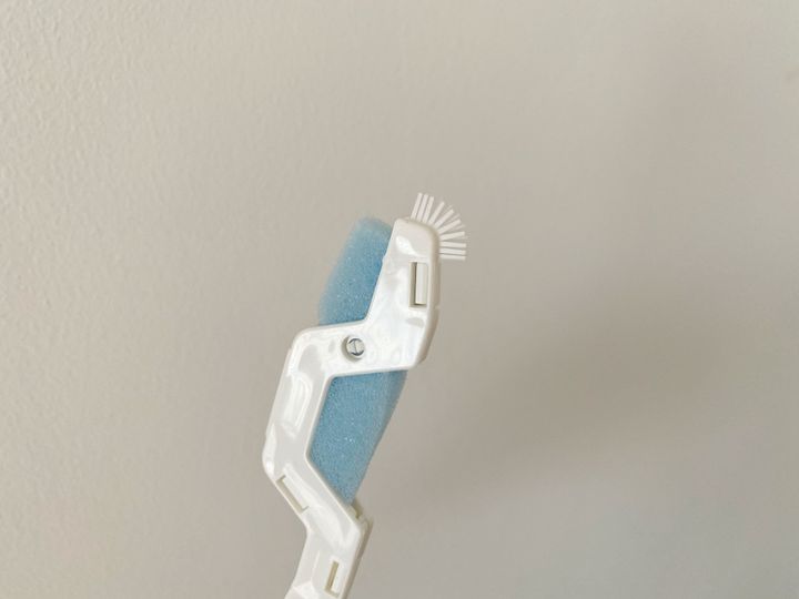 このブラシに付いているスポンジは予め洗剤が含まれているので、水に濡らすだけで掃除できちゃいます。ウォシュレットの形状にピタっと沿うので磨きやすい!