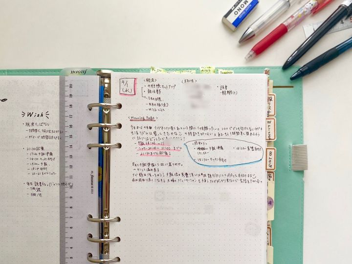 最初は上手くいかず三日坊主になったりと習慣化するまでに時間がかかりました。そんな中で自分の書きやすいように手帳をカスタマイズするようになってからは自然と毎朝、手帳を開くようになりました。