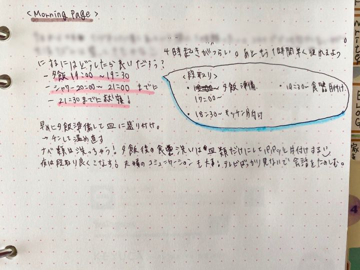 毎朝【モーニングページ】を書くだけで朝の手帳タイムは終わりです。
