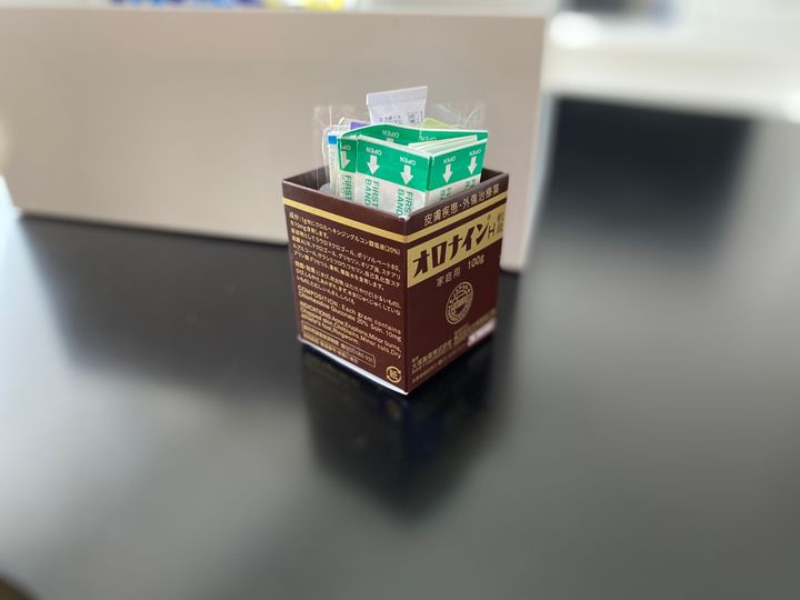使用頻度の高い絆創膏は箱から一部を取り出して空き箱に立ててみました。すぐ取り出せるし、見つけやすい!小物入れを購入しなくても空き箱で代用できます。
