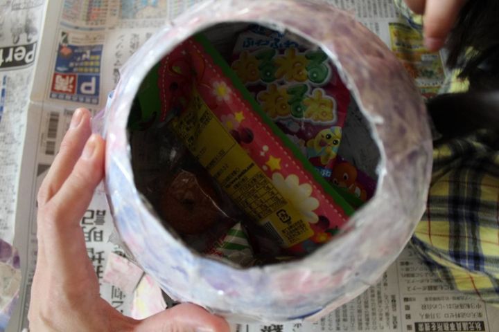 今回は1人1個ずつ作りましたが、お正月はみんなで順番に割っていきお菓子以外にも文房具やお金を入れてあげたらすごく盛り上がりました♪