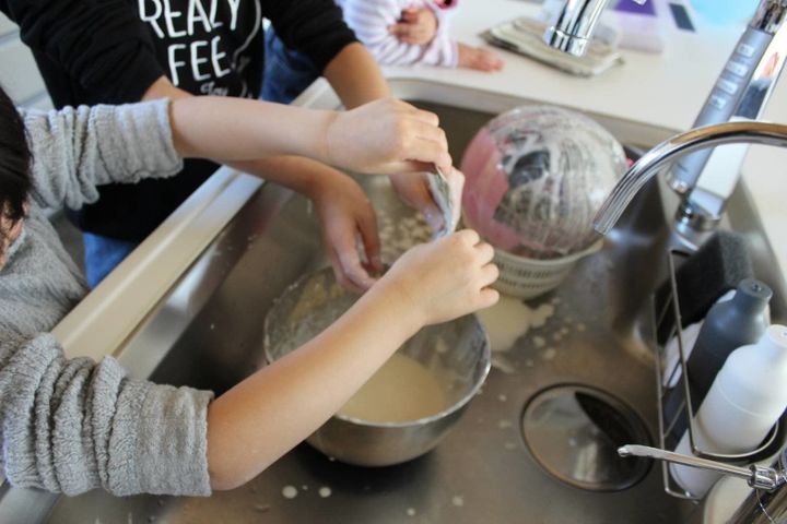 シンクでやると、終わったあとに流すだけなので楽チンです!