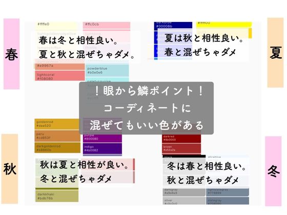 ここが「眼から鱗」だったのですが、服のカラーは季節を超えて組み合わせるなら相性がある。