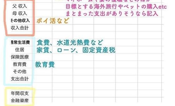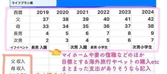 ご家庭によって、家族構成もライブイベントもら違うので、ライフプラン表を作る。
