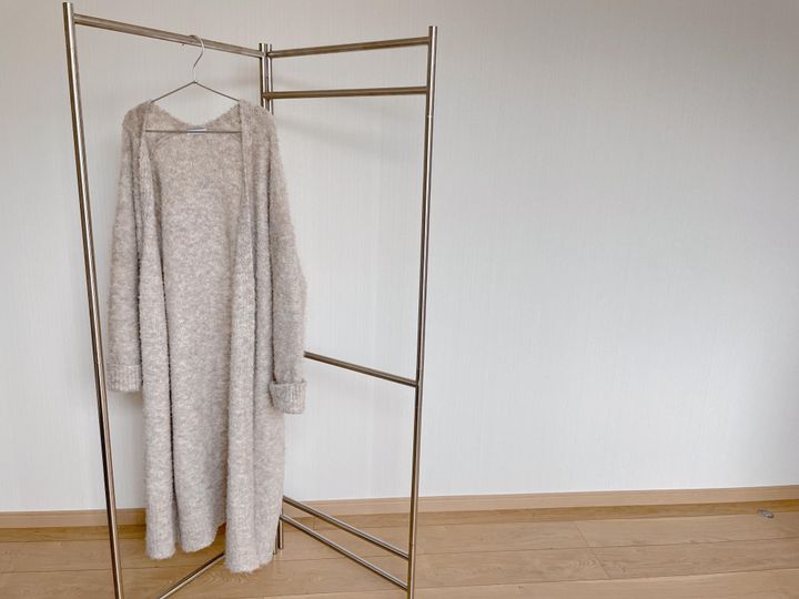 ガウンのようなロングカーディガンは、車移動を中心とした日や室内着としても活躍します。