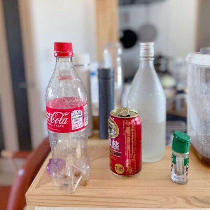 空のペットボトルや缶、使用済みのキッチンペーパーなど。